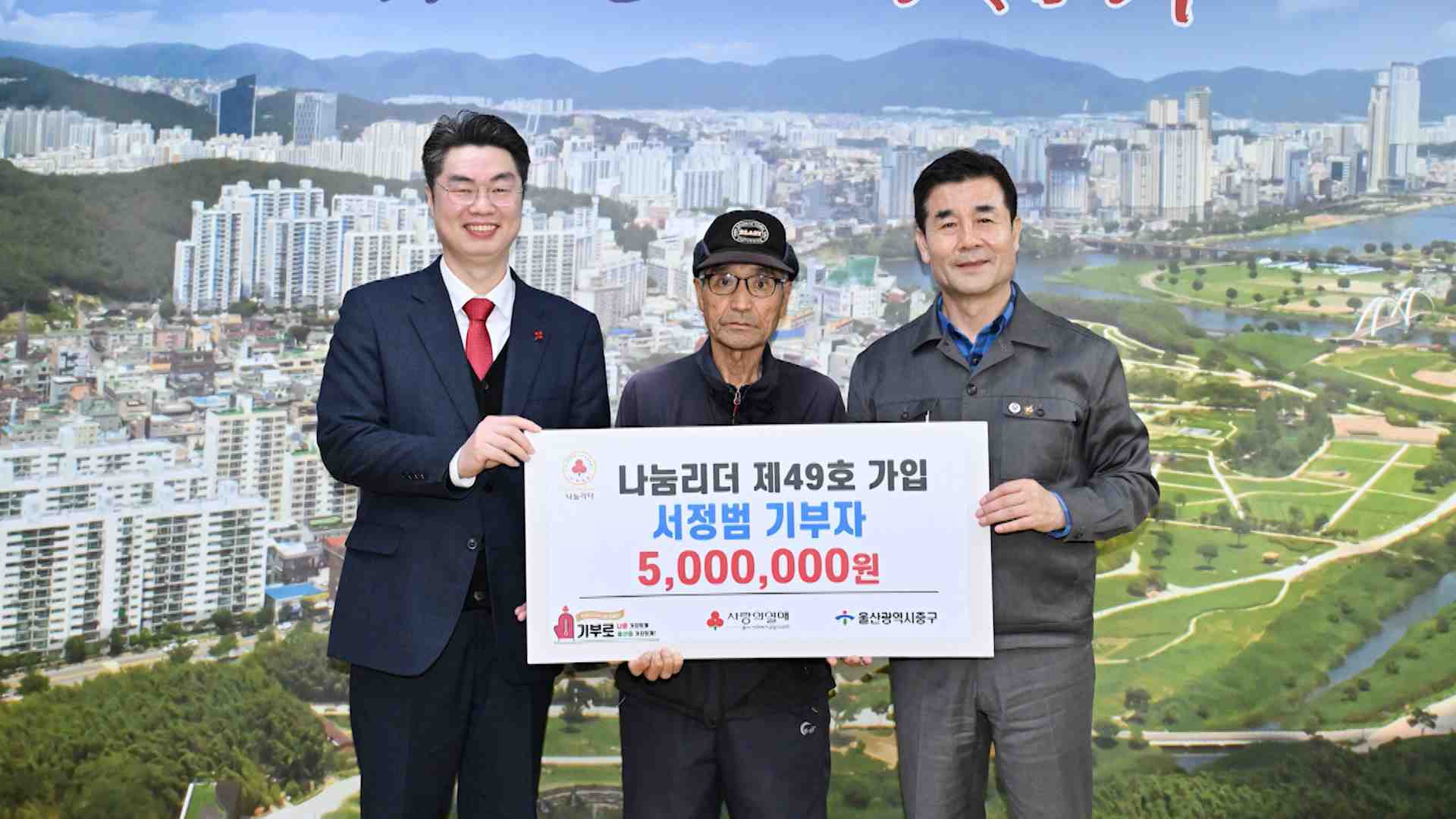 중구 병영1동에 사 서정범씨는 오늘(12/11) 중구청을 방문해 이웃돕기 후원금 500만 원을 전달했습니다.