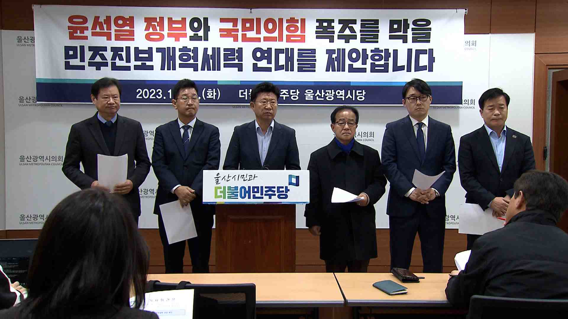 더불어민주당 울산시당은 오늘(12/12) 기자회견을 열고 진보 개혁 정당과 시민단체, 노동단체가 함께하는 협의체 구성을 제안했습니다.