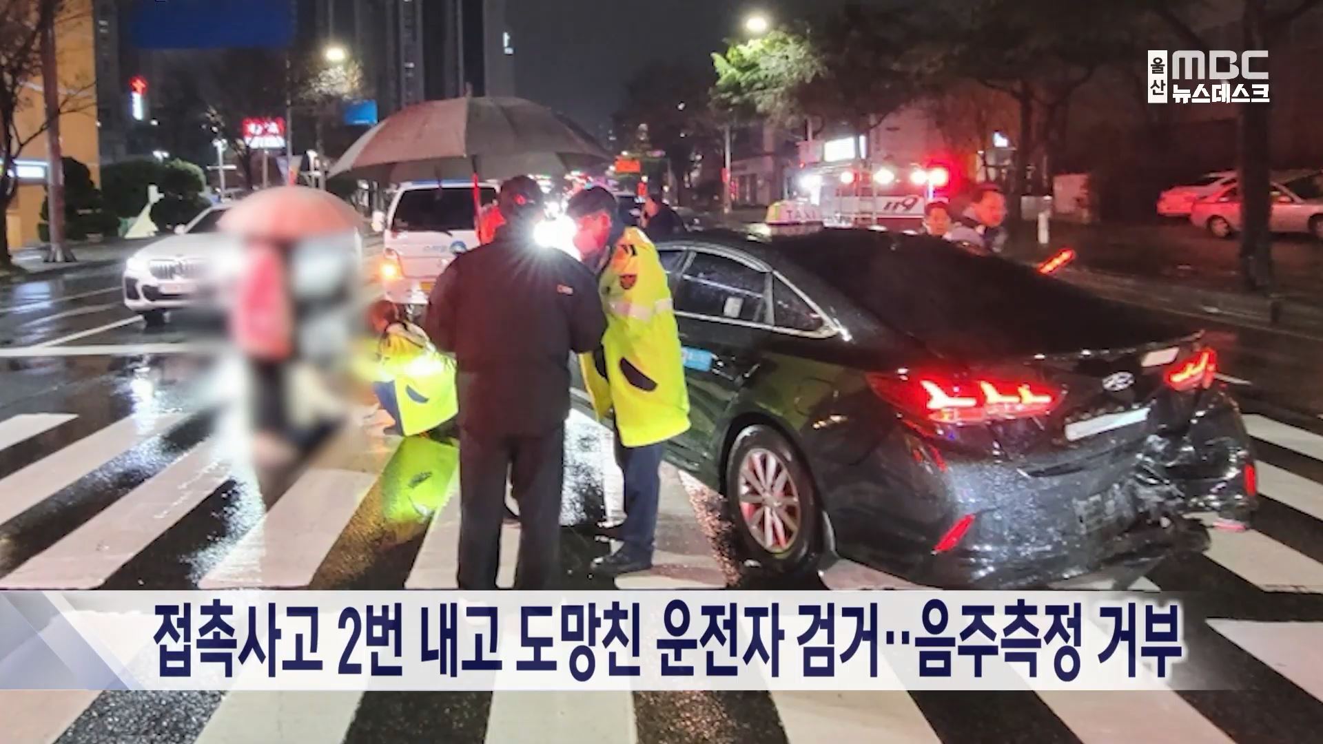 이 남성은 어제(12/15) 오후 10시 25분쯤 남구 달동사거리에 택시를 들이받아 승객과 보행자 등 3명을 다치게 하고 1km가량 떨어진 곳에 차를 세우고 도망친 혐의를 받고 있습니다.
