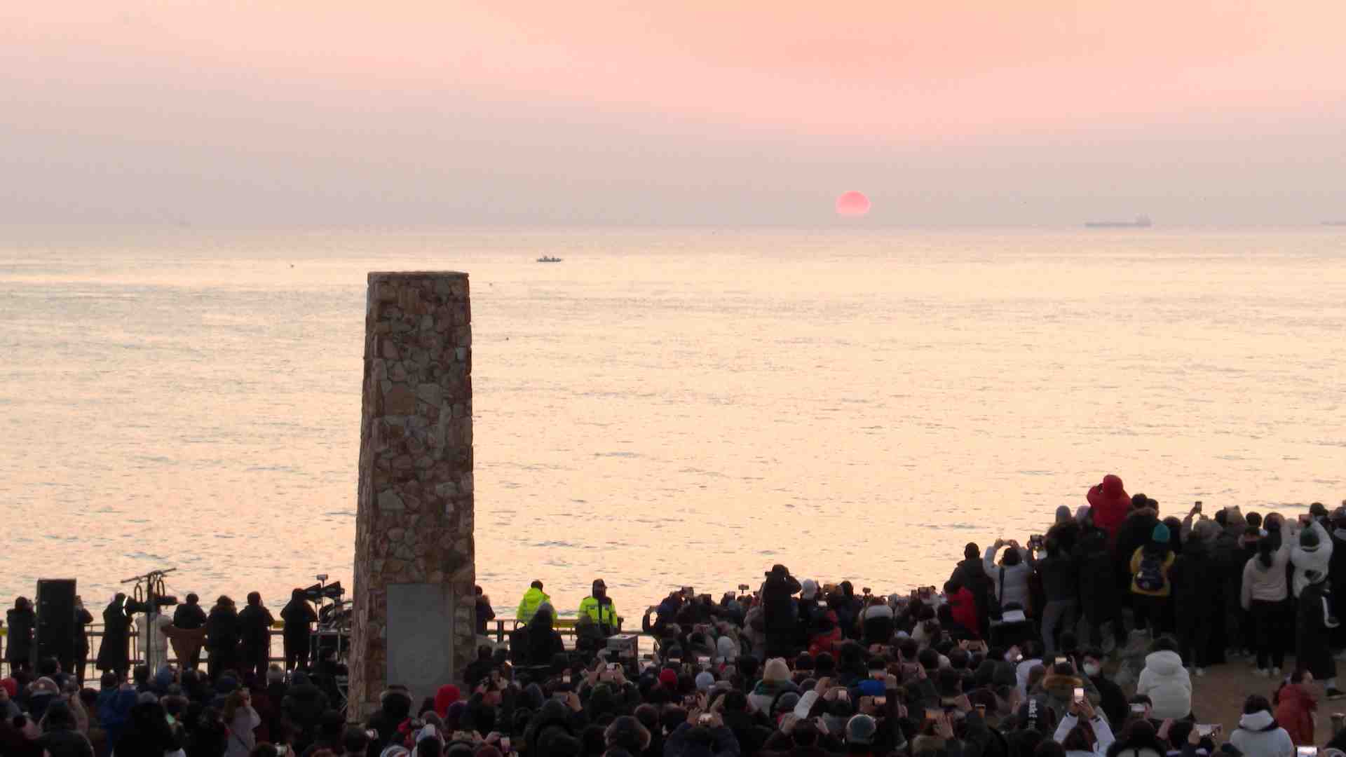 새해를 맞아 한반도에서 가장 먼저 해가 뜨는 울주군 간절곶에서 해넘이와 해맞이 행사가 동시에 진행됩니다.
