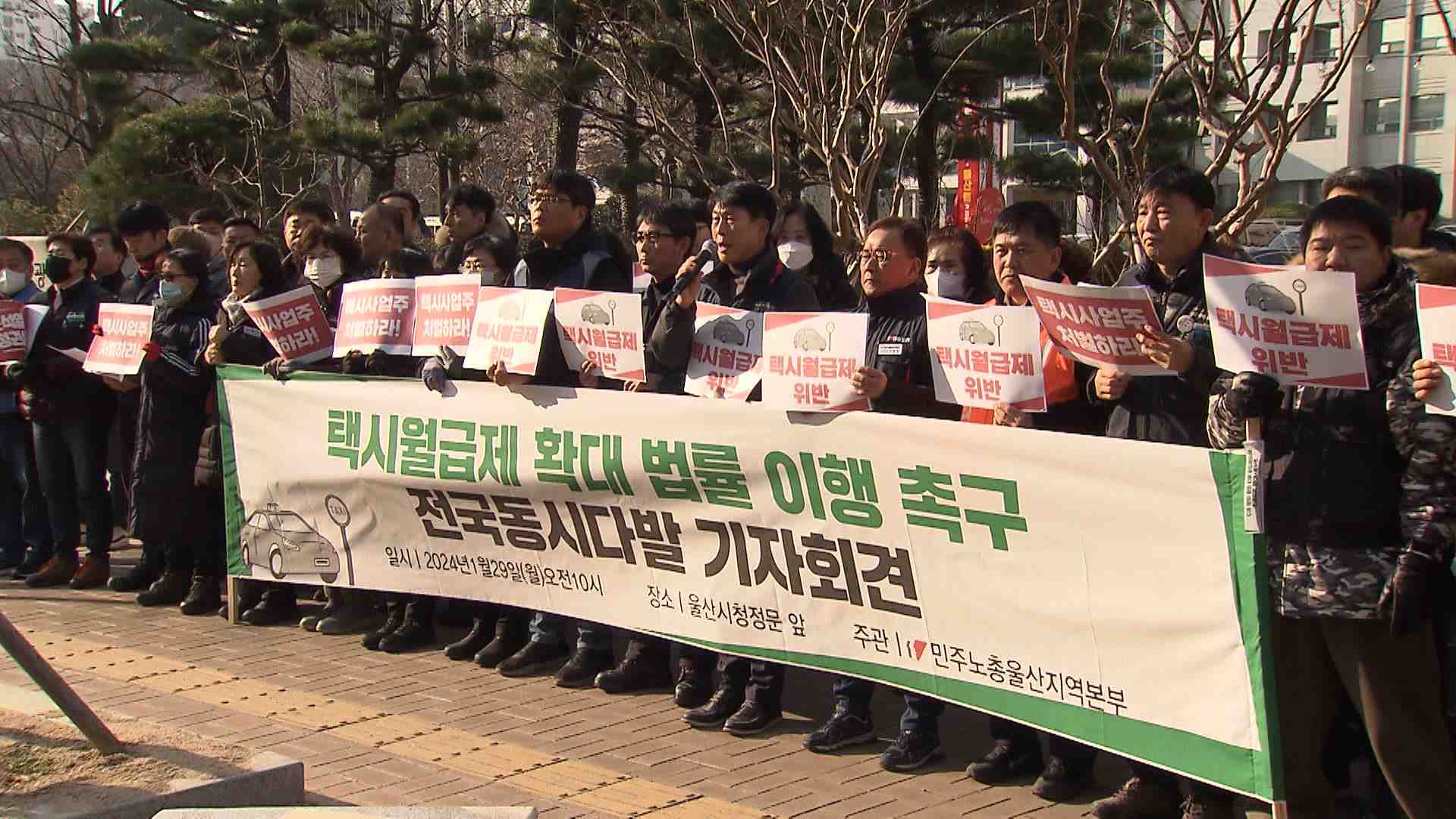 민주노총 울산본부는 기자회견을 열고, 택시월급제 전국 확대 시행이 7개월도 남지 않았지만 택시사업장들은 취업규칙과 임단협, 근로계약서 개정 등 월급제 시행에 필요한 준비를 제대로 하지 않고 있다고 주장했습니다.