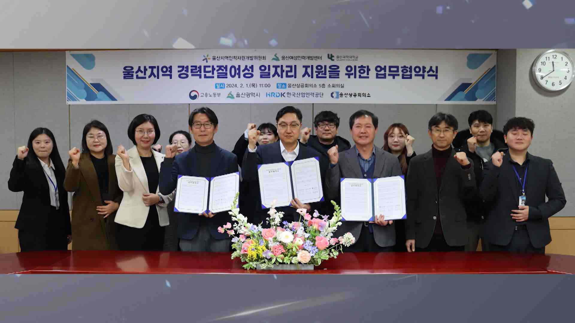 울산상의를 중심으로 구성된 울산인적자원 개발위원회는 오늘(2/1) 울산여성인력개발센터, 울산과학대학교와 ‘울산지역 경력단절여성 일자리 지원 공동협력 업무협약’을 체결했습니다.