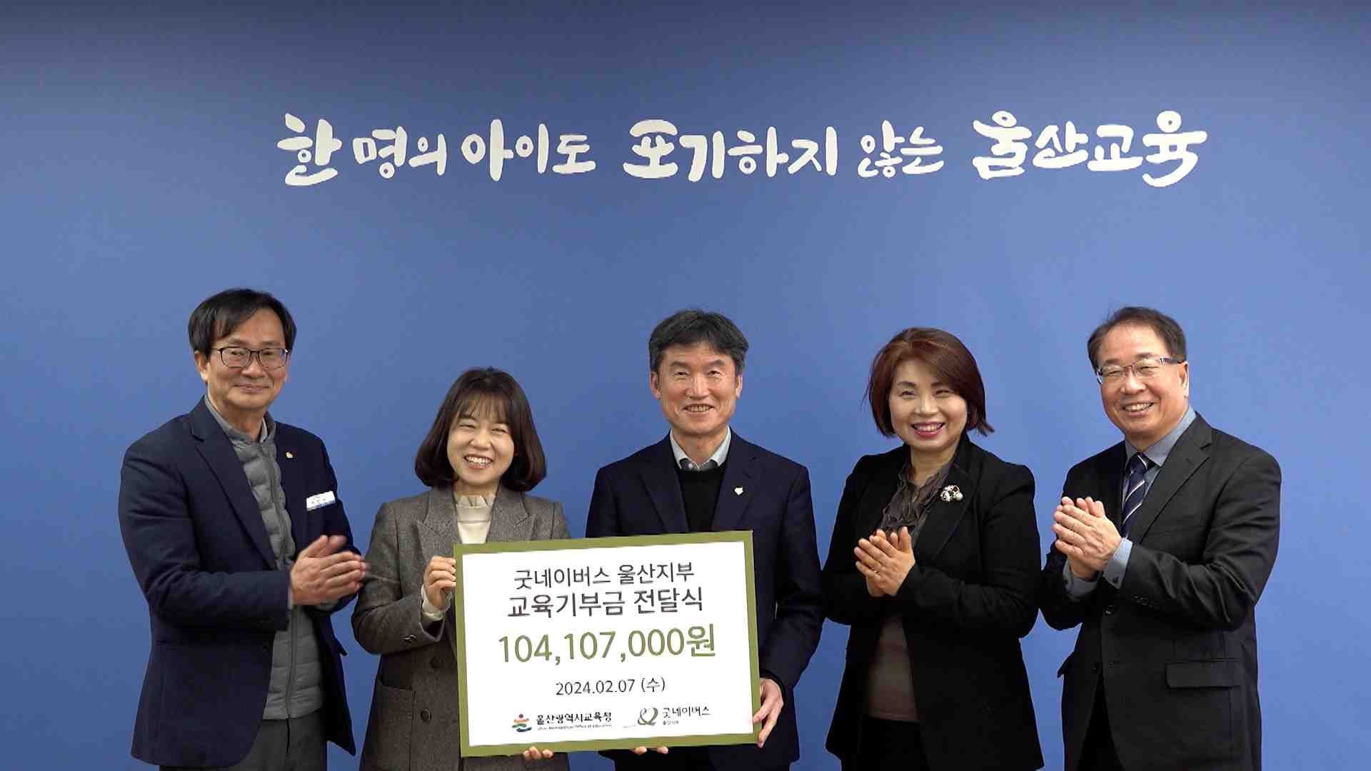 굿네이버스 울산지부는 오늘(2/7) 울산시교육청을 찾아 아동권리교육과 인성교육, 빈곤 가정 아동 지원사업에 써달라며 1억여원을 기탁했습니다.
