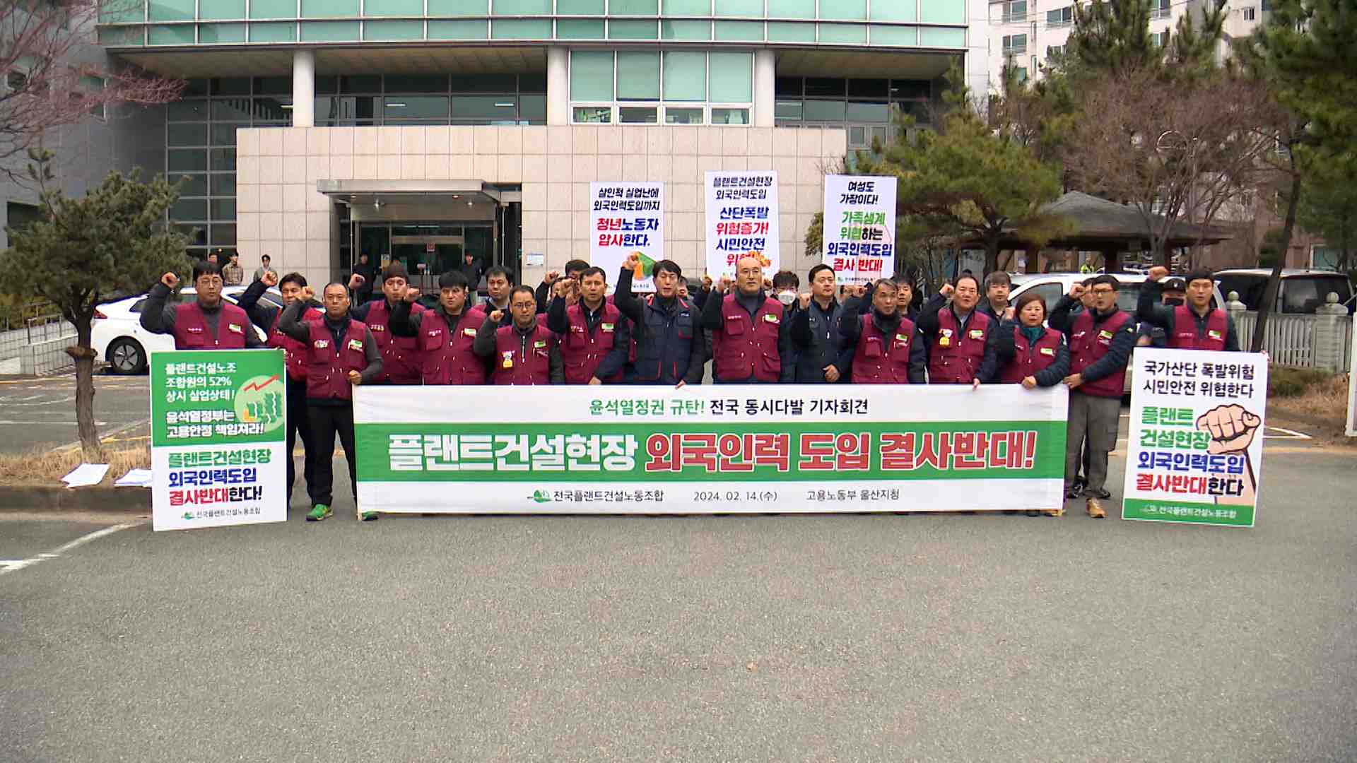 국가중요시설로 분류되는 석유화학공장과 발전소 건설 현장에 외국인 노동자를 도입하는 정책이 추진되자 노동계가 반발하고 나섰습니다.