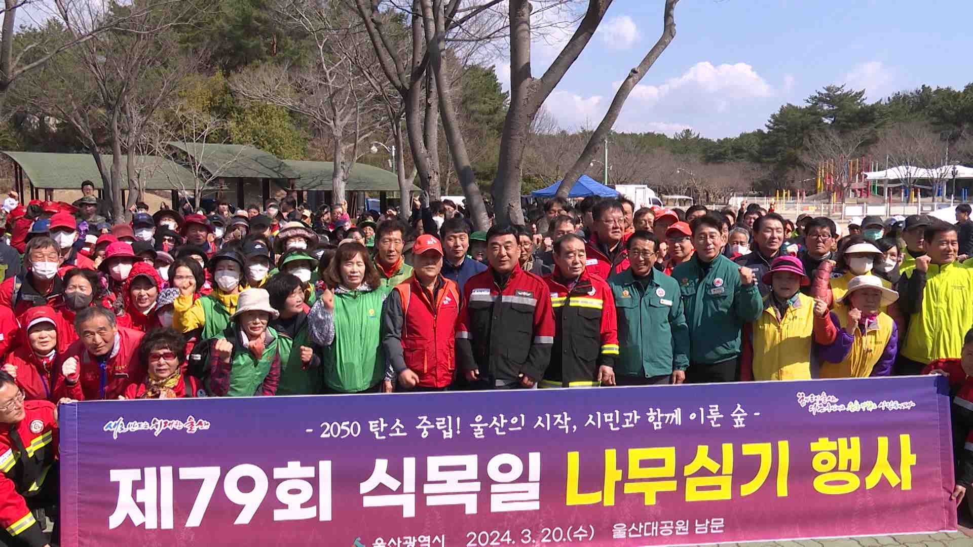 울산시가 오늘(3/20) 오전 울산대공원에서 제79회 식목일 나무 심기 행사를 열고 편백나무 2,500그루를 심었습니다.