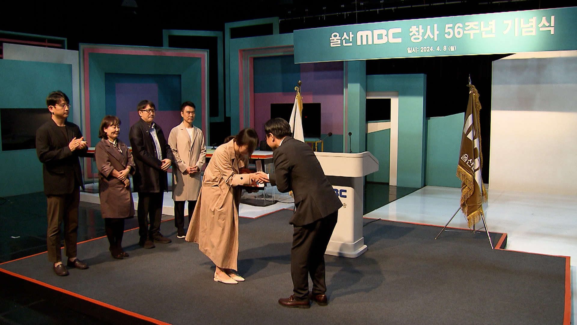 울산문화방송은 오늘(4/8) 창사 56주년 기념식을 공개홀에서 갖고 방송 발전에 도움을 준 김두남 고래연구소장 등 외부인사와 유공자를 표창했습니다.