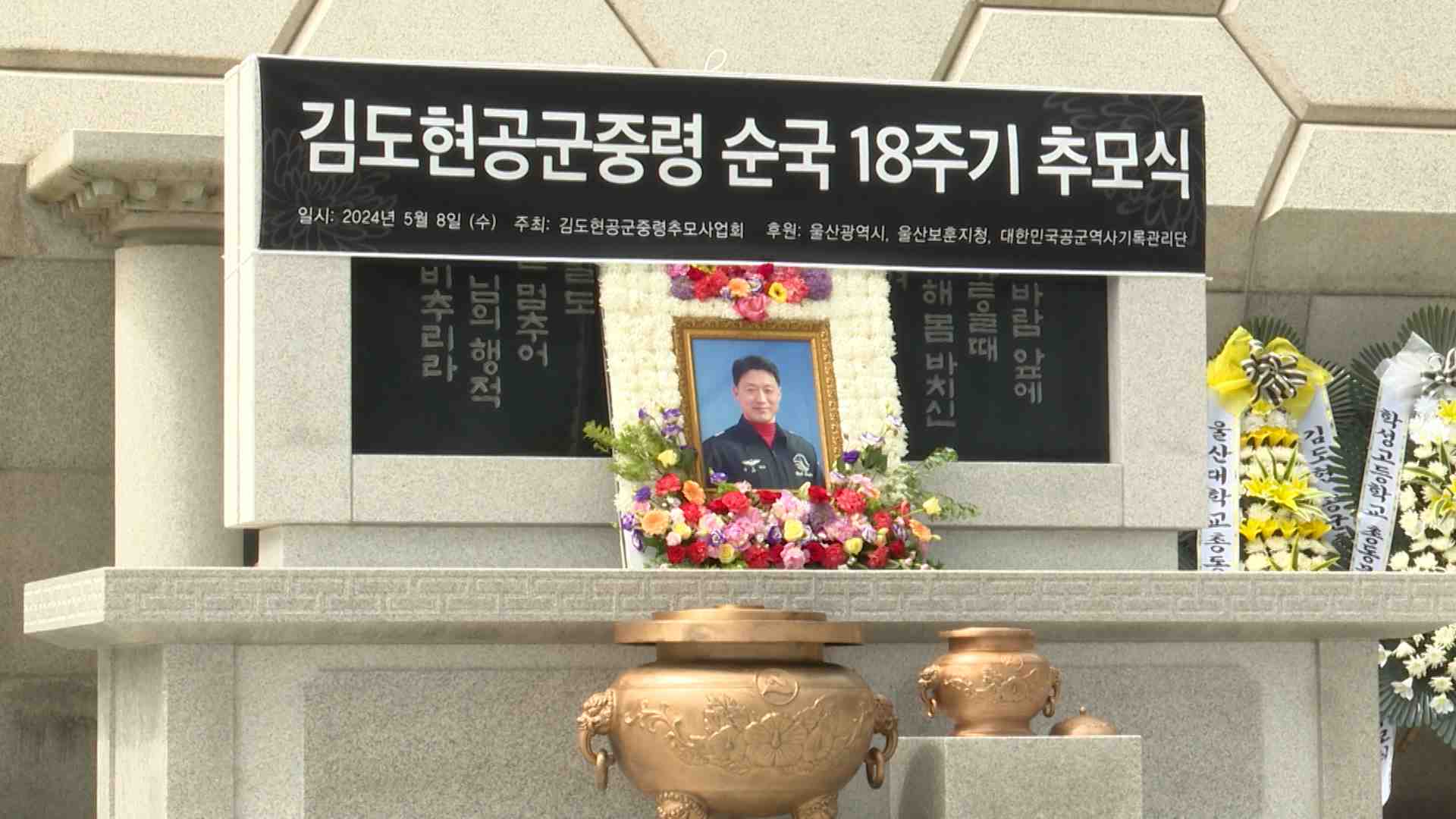 어린이날 축하 에어쇼 중 고장 난 기체 조종간을 끝까지 잡아 참사를 막은 고 김도현 공군 중령의 18주기 추모식이 열렸습니다.