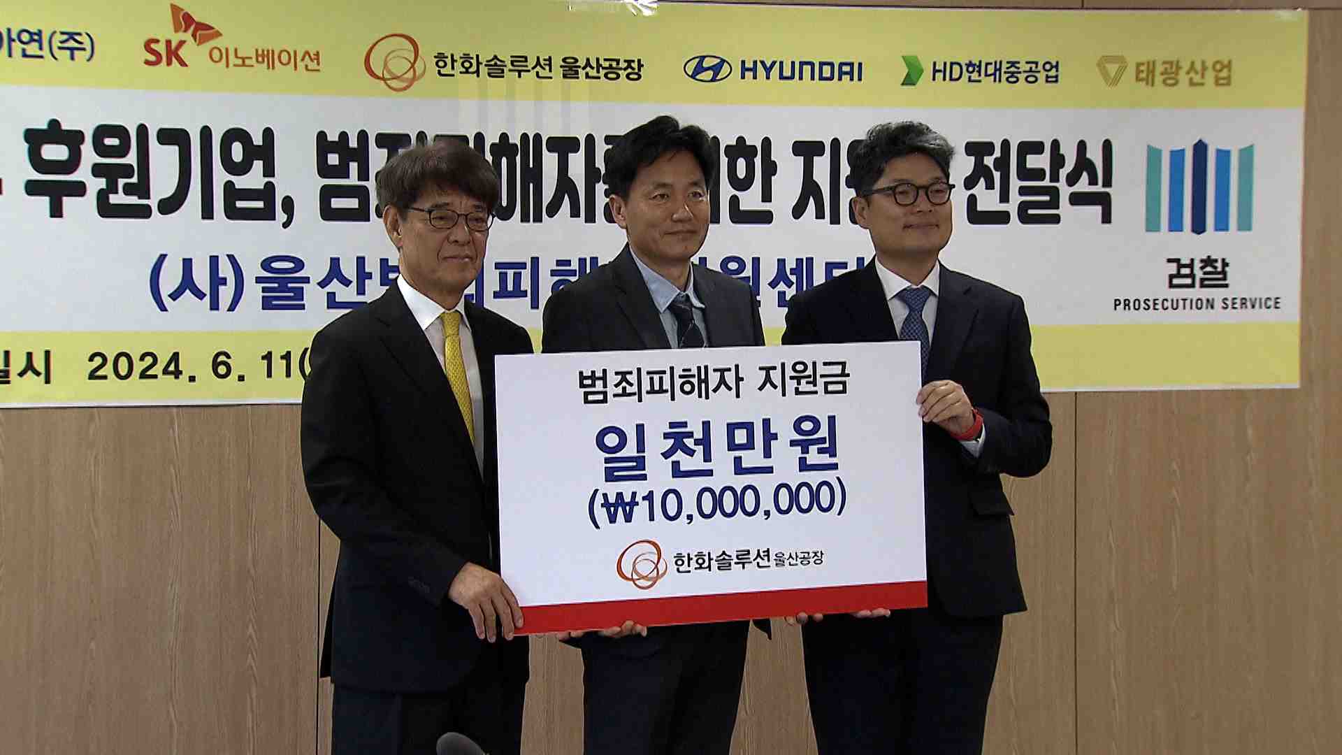 울산범죄피해자지원센터는 오늘(6/11) 지역 기업의 후원을 받아 범죄피해자 지원금 1억 1천만 원을 전달했습니다.