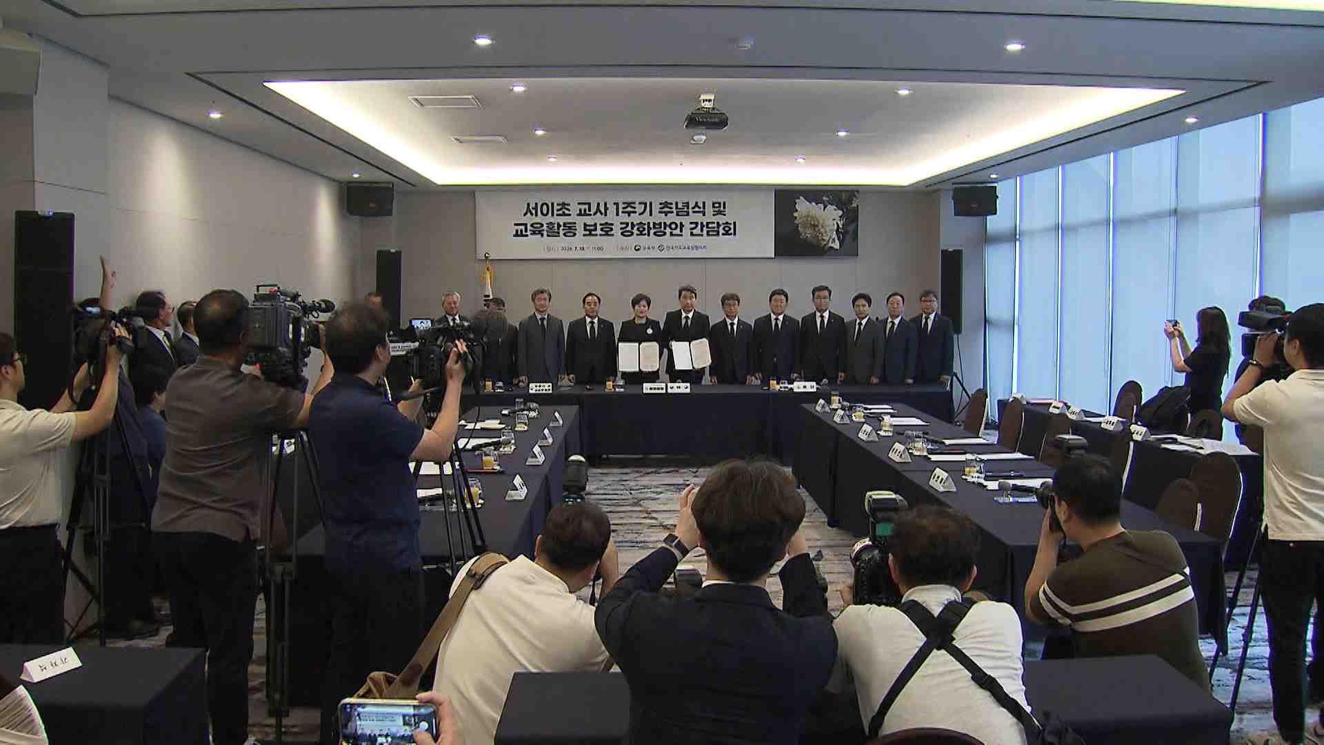 전국 시도교육감들은 회의에 앞서 서이초 교사 1주기를 맞아 추념식을 갖고 교권회복을 위한 공동선언문을 채택했습니다.