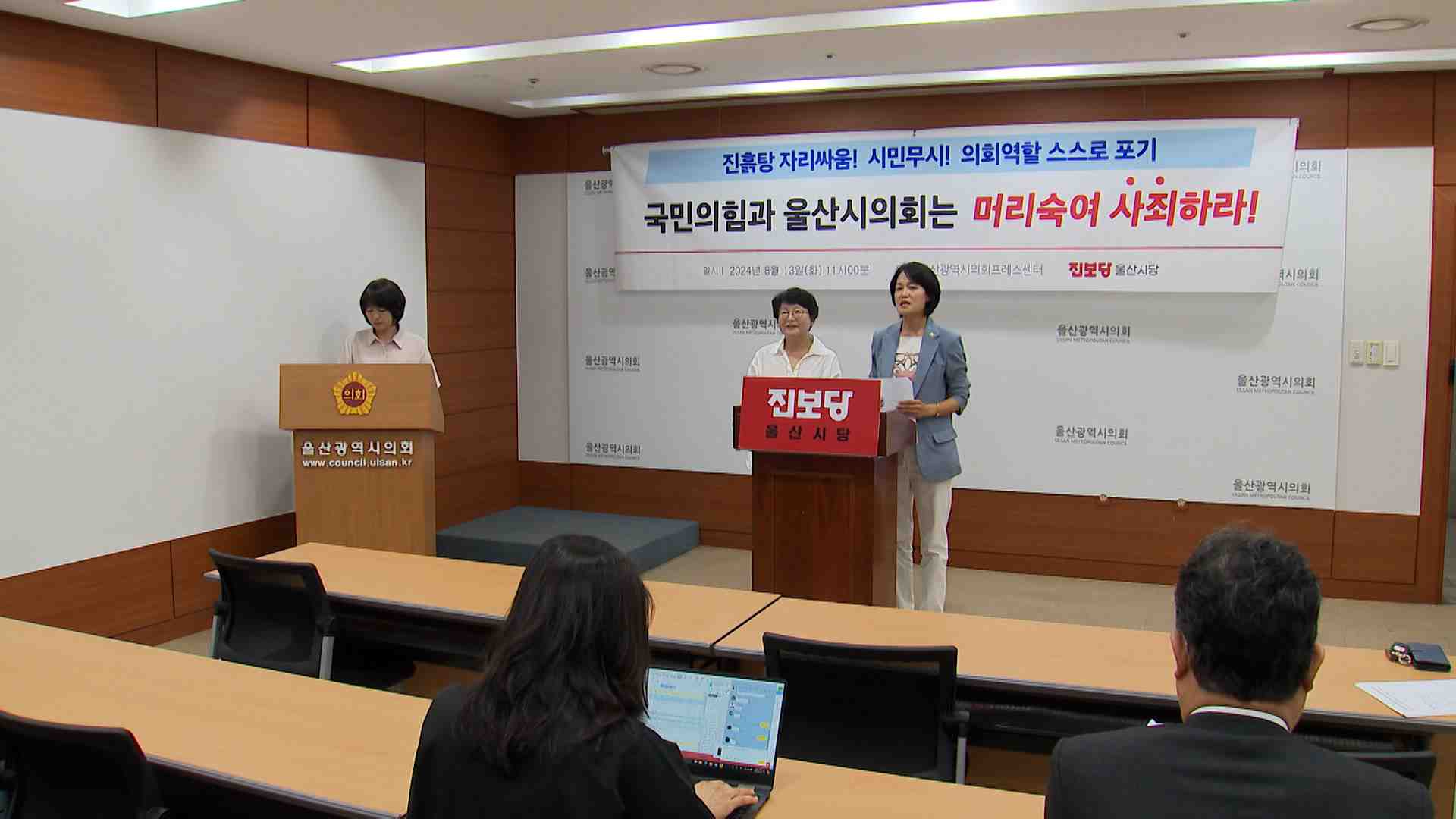 진보당 울산시당은 기자회견을 열고 국민의힘 의원들은 더 이상 자리 싸움을 멈추고 시민들에게 머리 숙여 사과하라고 요구했습니다.
