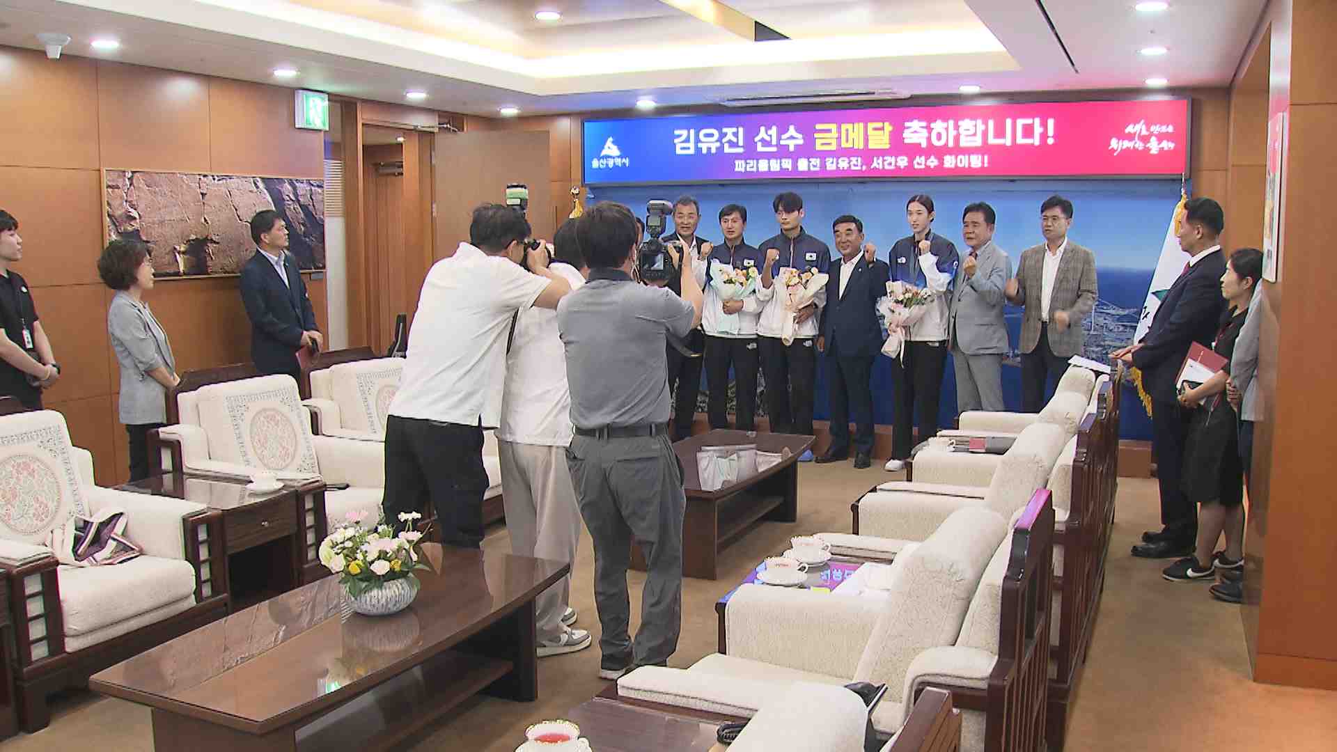 파리 올림픽 태권도 종목에서 우수한 성적을 거둔 김유진, 서건우 선수가 울산을 방문했습니다.