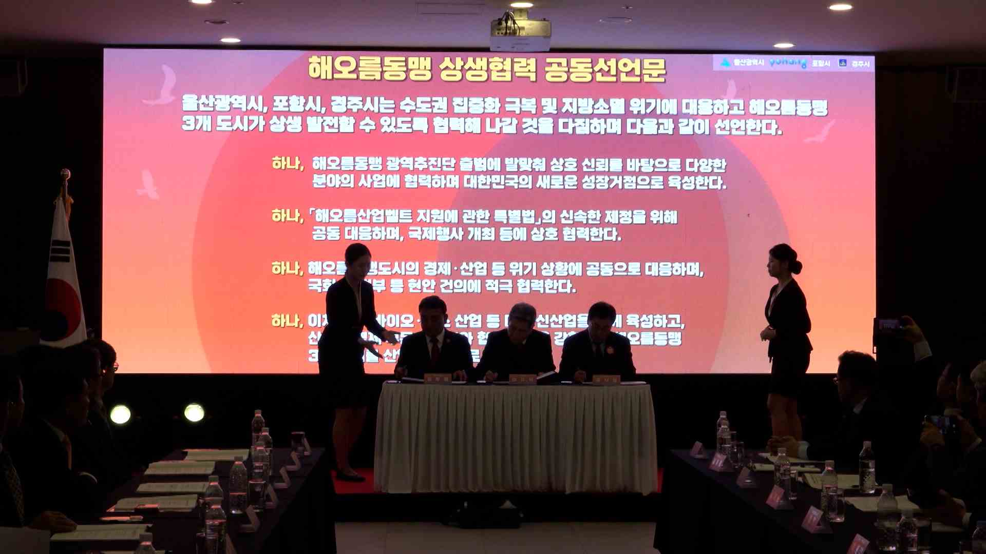 오늘(11/27) 포항에서 열린 하반기 정기회에서 3개 도시는 내년 1월 해오름동맹 광역추진단을 공식 출범해 공동 협력 사업을 체계적으로 추진하기로 했습니다.