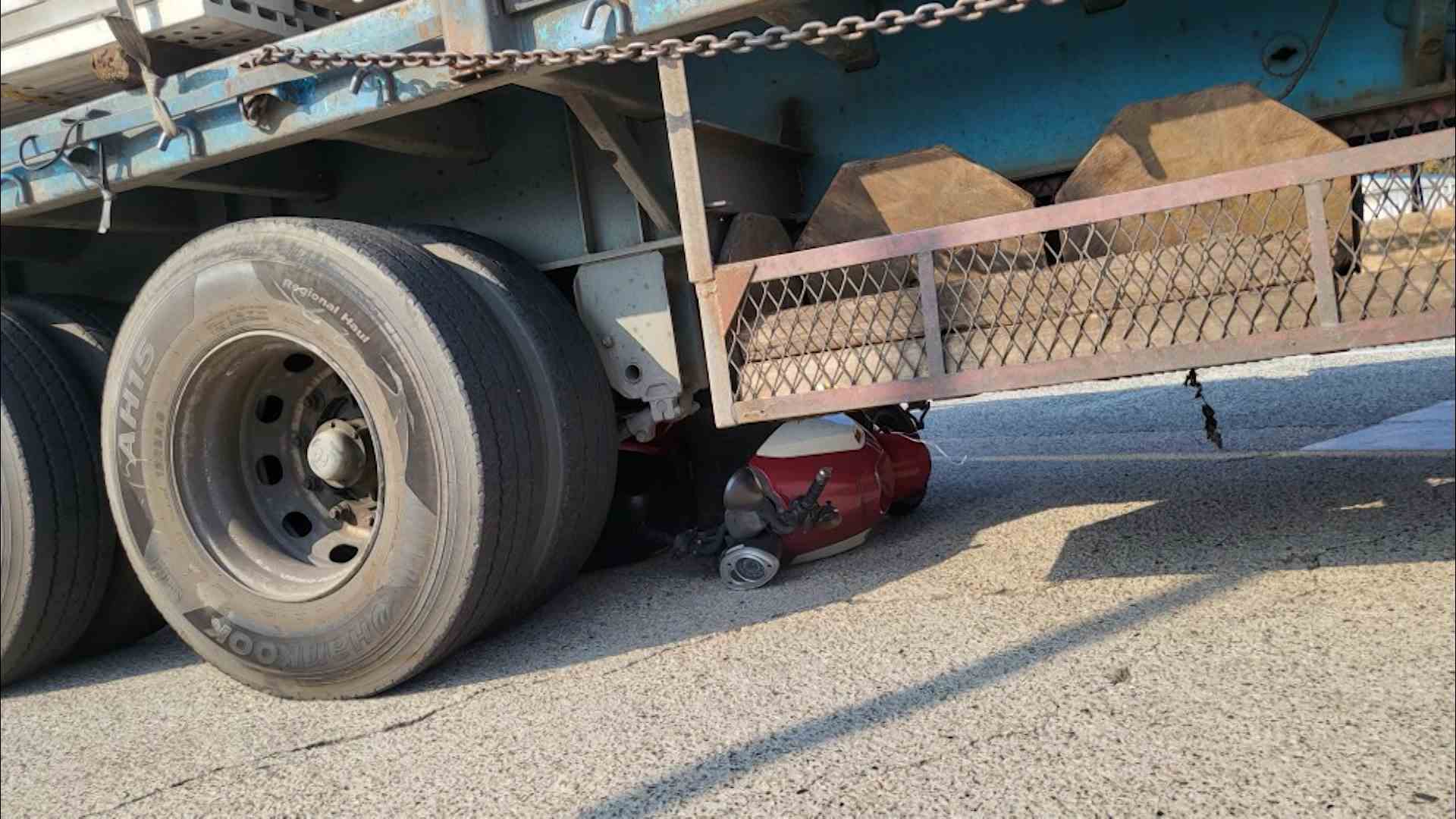 경찰은 트레일러가 우회전을 하던 중 뒤따라오던 오토바이와 부딪히며 사고가 발생한 것으로 보고 정확한 사고 경위를 조사하고 있습니다.