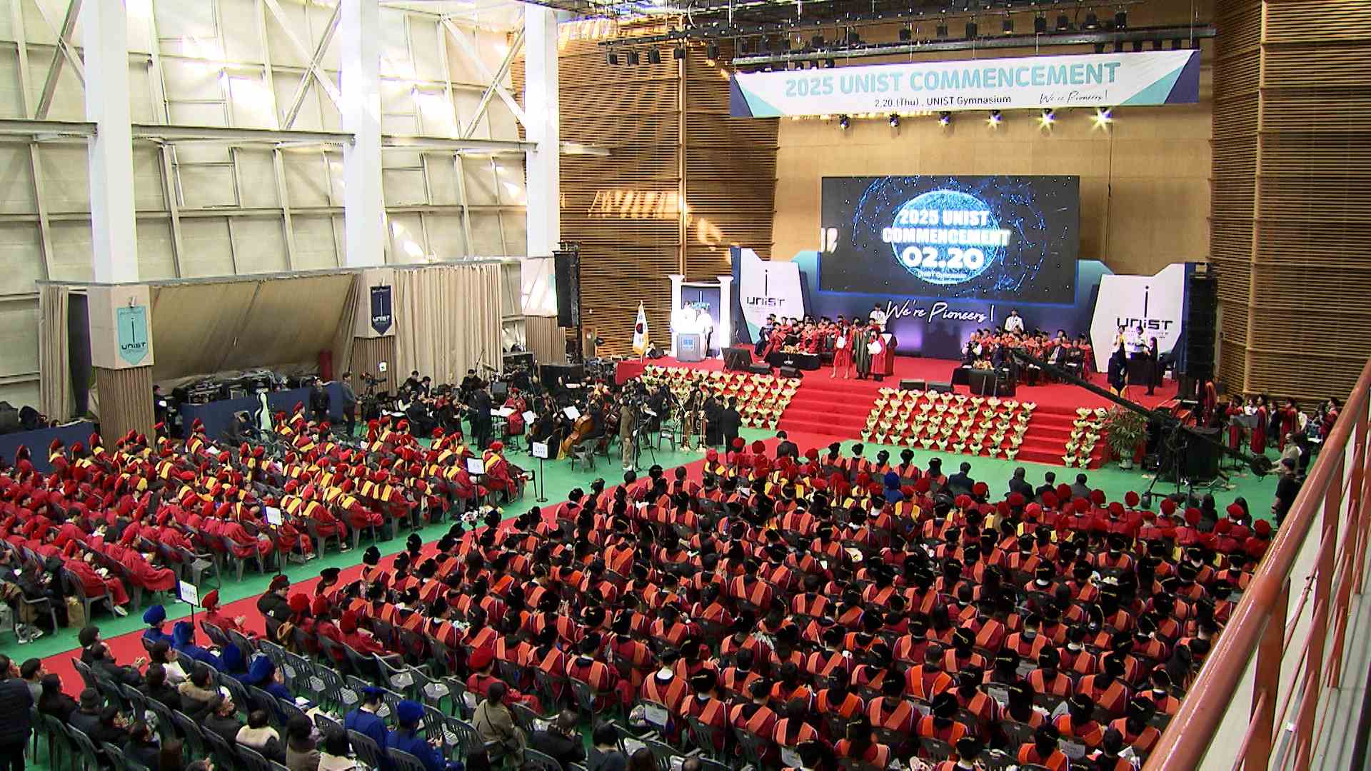 유니스트가 오늘(2/20) 2025학년도 학위 수여식을 개최한 가운데 학사 414명과 석·박사 511명 등 모두 925명이 학위를 수여받았습니다.