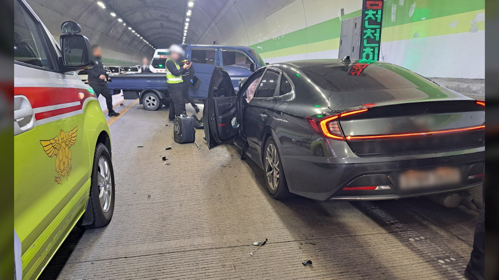 오늘(4/3) 오후 12시 20분쯤 동구 염포산 2터널에서 중앙선을 넘은 트럭과 승용차가 부딪히는 사고가 발생했습니다.