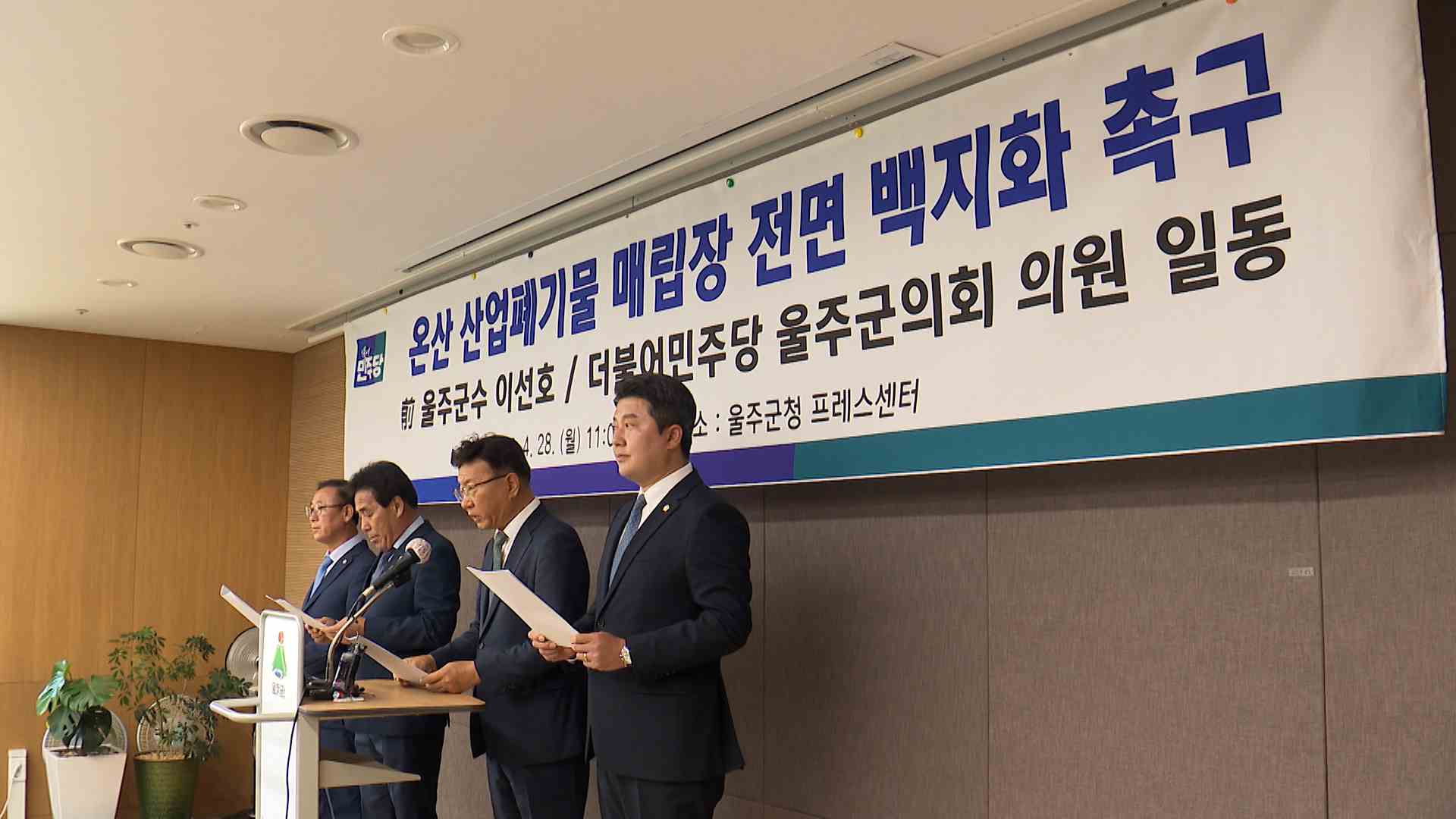전 울주군수인 이선호 더불어민주당 울산시당위원장은 기자회견을 열고 본인이 재직한 민선 7기에 두 차례 수용 불가 통보를 했다며, 울주군에 입안 절차 중단을 요구했습니다.