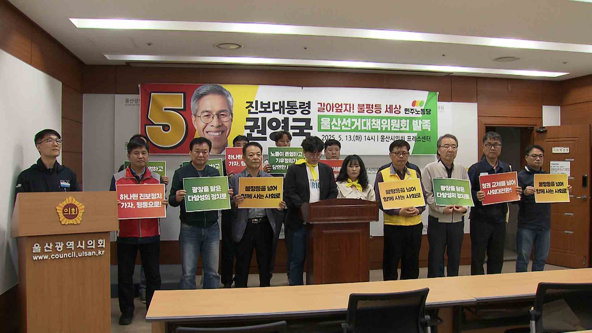 민주노동당은 오늘(5/13) 울산 선거대책위원회 발족 기자회견을 열고 기호 5번 권영국 후보 지지를 호소했습니다.