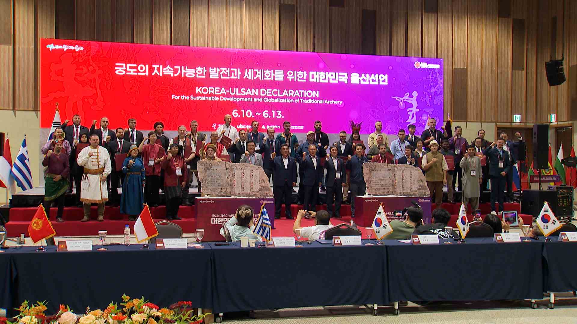 궁도 국제 학술발표회를 개최하고 있는 울산시는 42개국 궁도 단체 대표들과 함께 울산 선언식을 열고 인류 보편의 문화유산으로서 궁도를 보호하고 발전하는데 협력하기로 했습니다.
