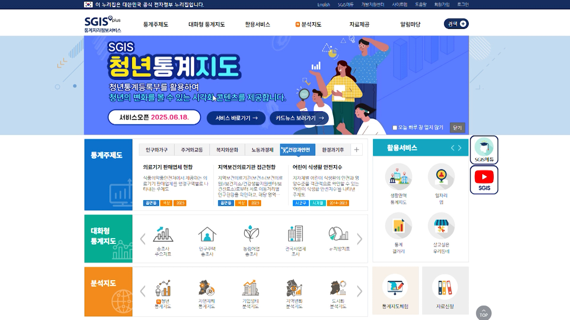 통계청이 제공하는 통계지리정보서비스에 청년통계지도가 추가됐습니다.