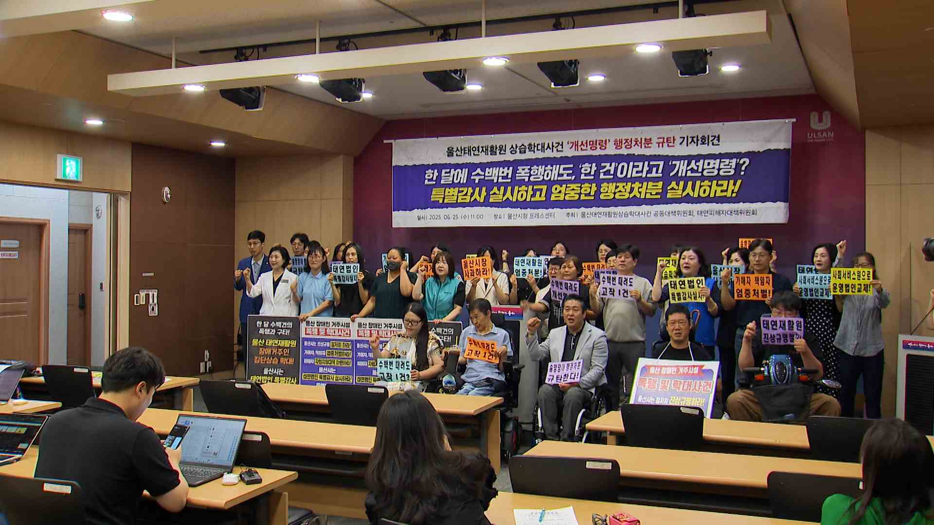 태연재활원상습학대사건 공동대책위원회는 오늘(6/25) 기자회견을 열고 북구청이 태연재활원 법인과 시설에 내린 행정처분을 규탄했습니다.