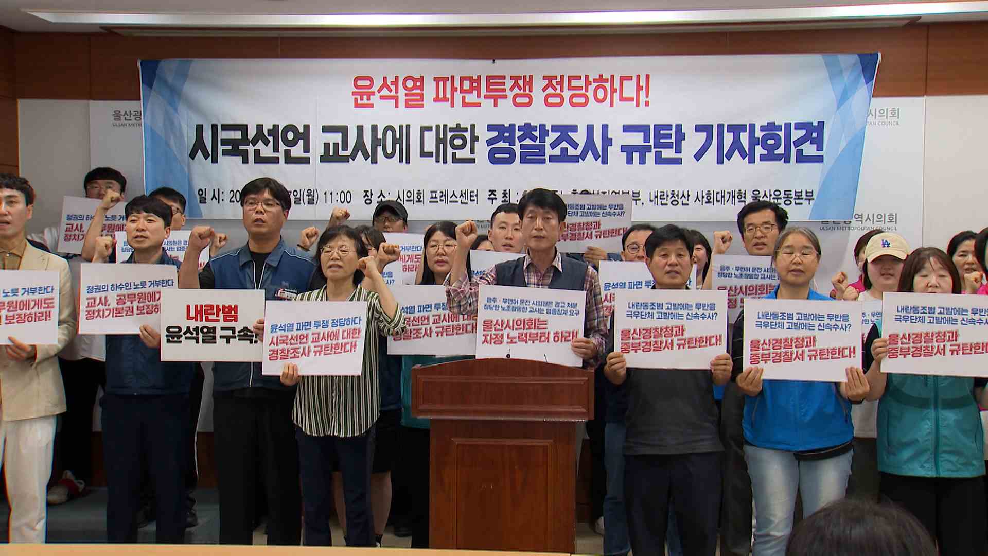 민주노총 울산지부가 기자회견을 열고 전교조의 윤석열 파면 시국선언과 관련한 경찰 수사를 규탄했습니다.