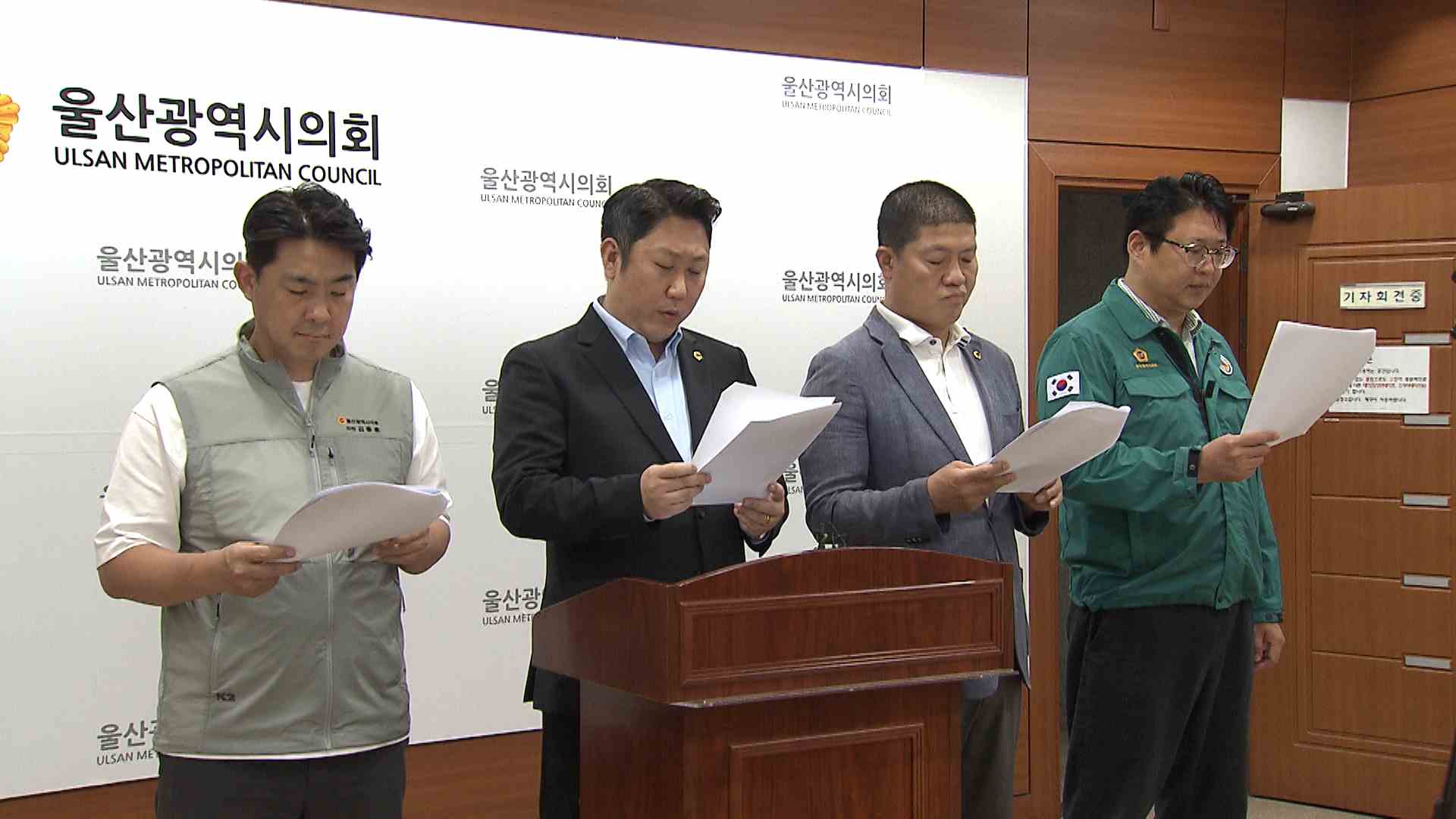 국민의힘 소속 울산시의원들은 오늘(7/24) 기자회견을 열고 공업축제 관련 조례 개정과 관련해 의도적인 왜곡을 중단하라고 요구했습니다.