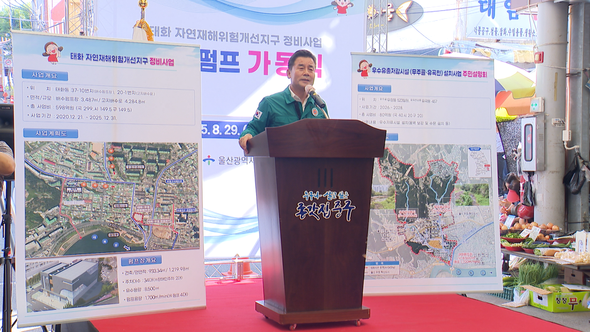 태화시장 일대의 침수 피해를 막기 위해 조성된 태화배수장 펌프 가동식이 오늘 열렸습니다.