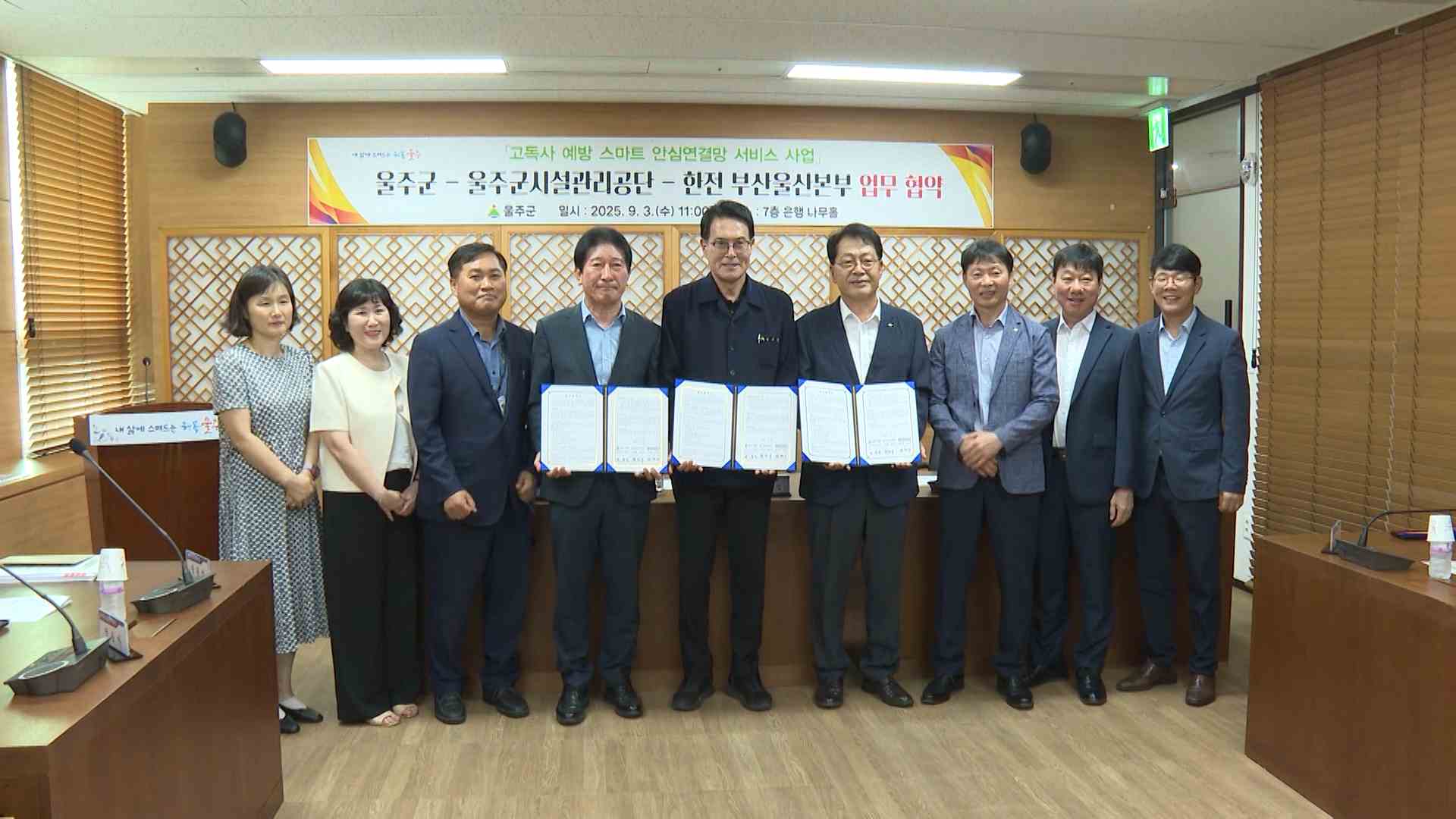 울산 울주군과 한국전력공사가 고독사 예방을 위한 스마트 안심 연결망 서비스 업무협약을 체결했습니다.