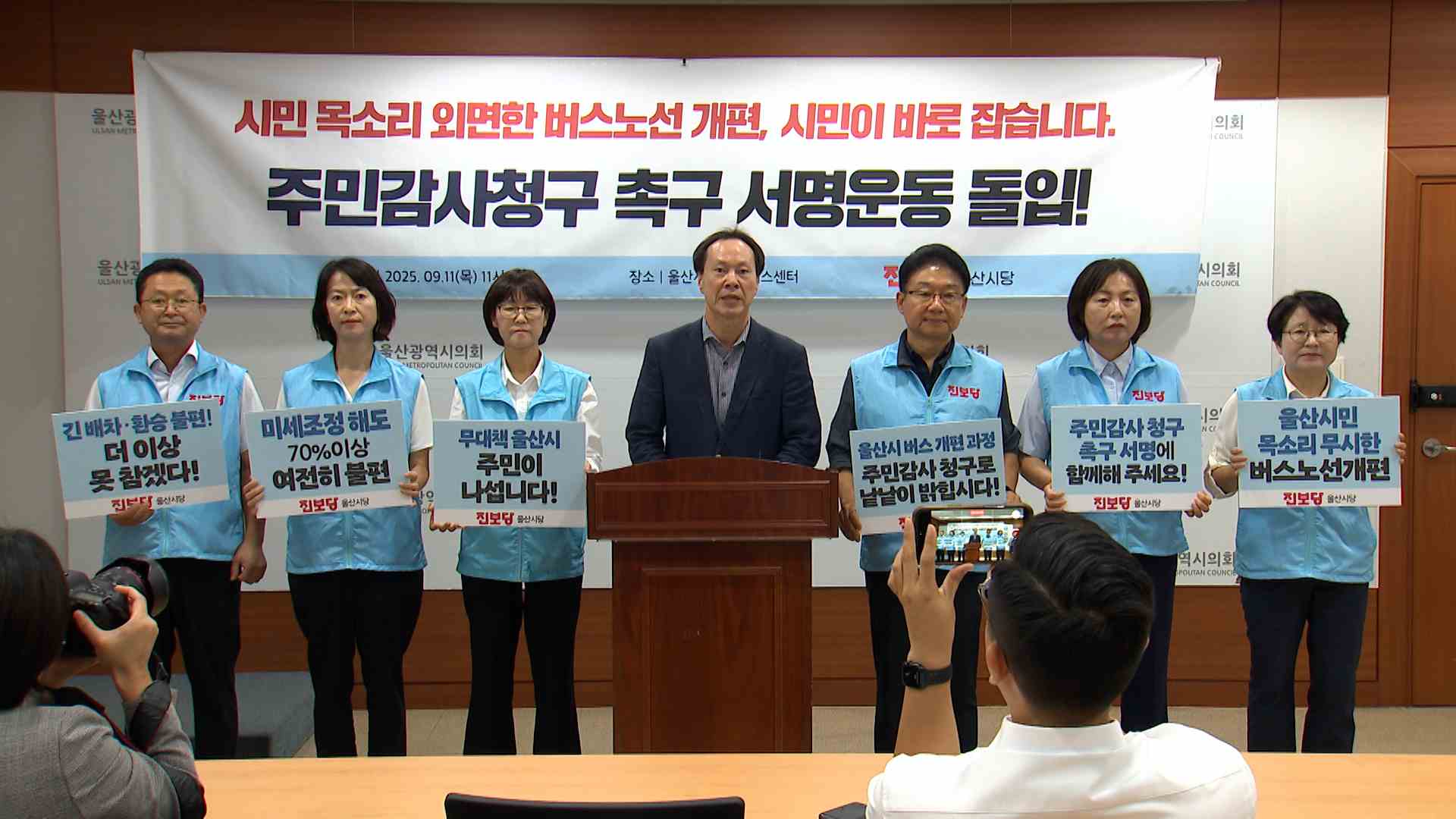 진보당 울산시당이 버스노선 개편으로 불편을 겪는 시민들을 위해 주민 감사청구 서명운동에 돌입한다고 밝혔습니다.