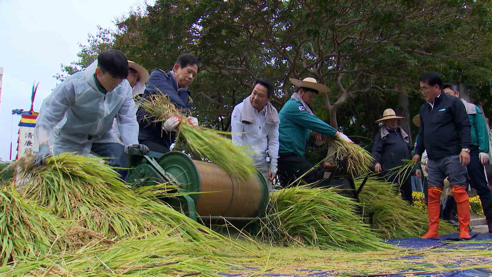울산시가 오늘(10/21) 시청 앞마당 생활정원에서 벼 베기 행사를 열고 시청 텃논에서 재배한 벼를 수확했습니다.