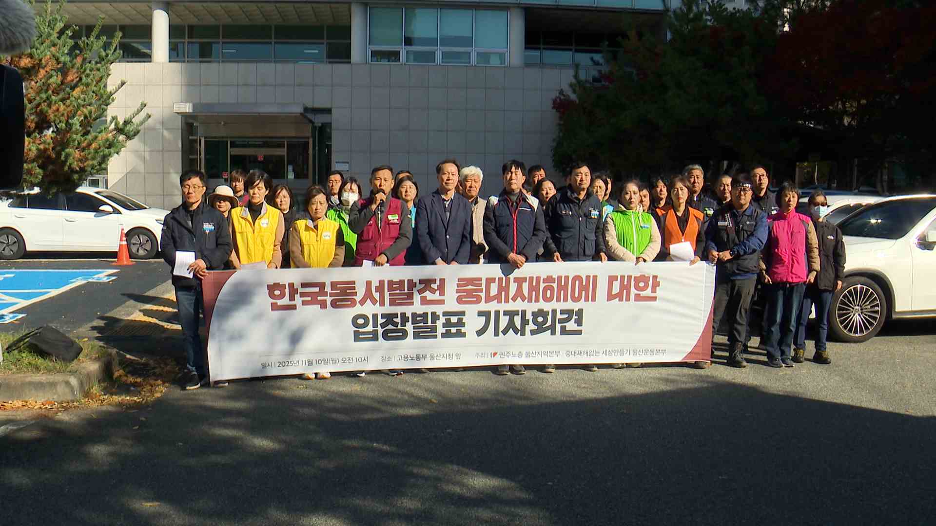 민주노총 울산본부가 오늘(11/10) 고용노동부 울산지청 앞에서 기자회견을 열고 울산화력발전소 보일러 타워 붕괴 사고와 관련해 위험의 외주화를 금지하고 다단계 하도급 구조를 개선해야 한다고 주장했습니다.