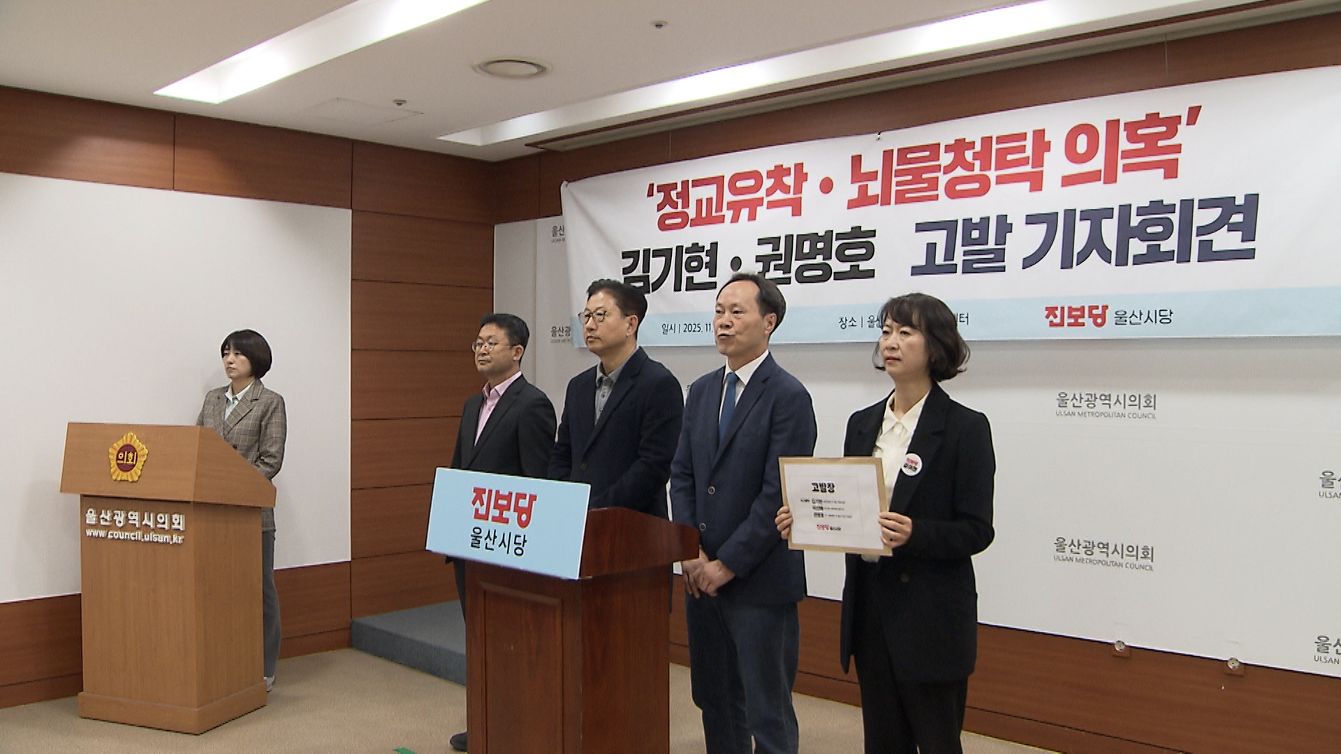 진보당 울산시당이 오늘(11/17) 기자회견을 열고 김기현 의원과 전 국회의원인 권명호 한국동서발전 사장을 정교유착과 뇌물청탁 의혹 혐의로 공수처에 고발한다고 밝혔습니다.