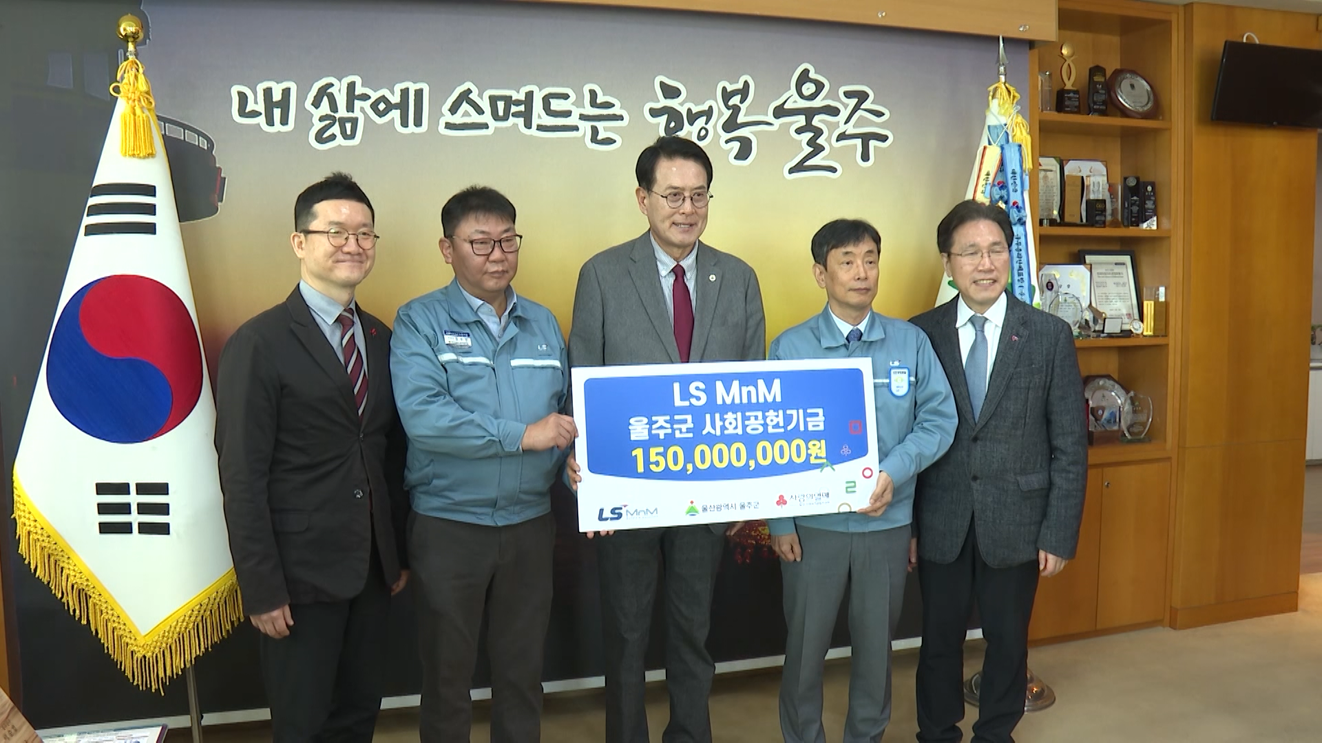 LS MnM이 오늘(2/23) 울주군청을 방문해 저소득 취약계층에 써달라며 1억 5천만 원을 전달했습니다.