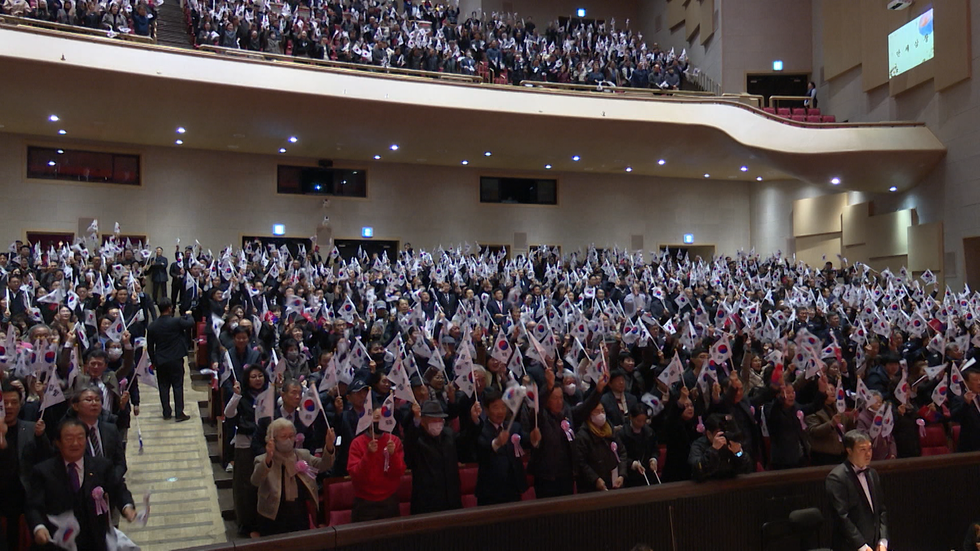문화예술회관 대공연장에서 열린 이번 행사는 독립유공자와 유가족 등 1천500명이 참석해 독립선언문 낭독, 만세 삼창을 진행했습니다.