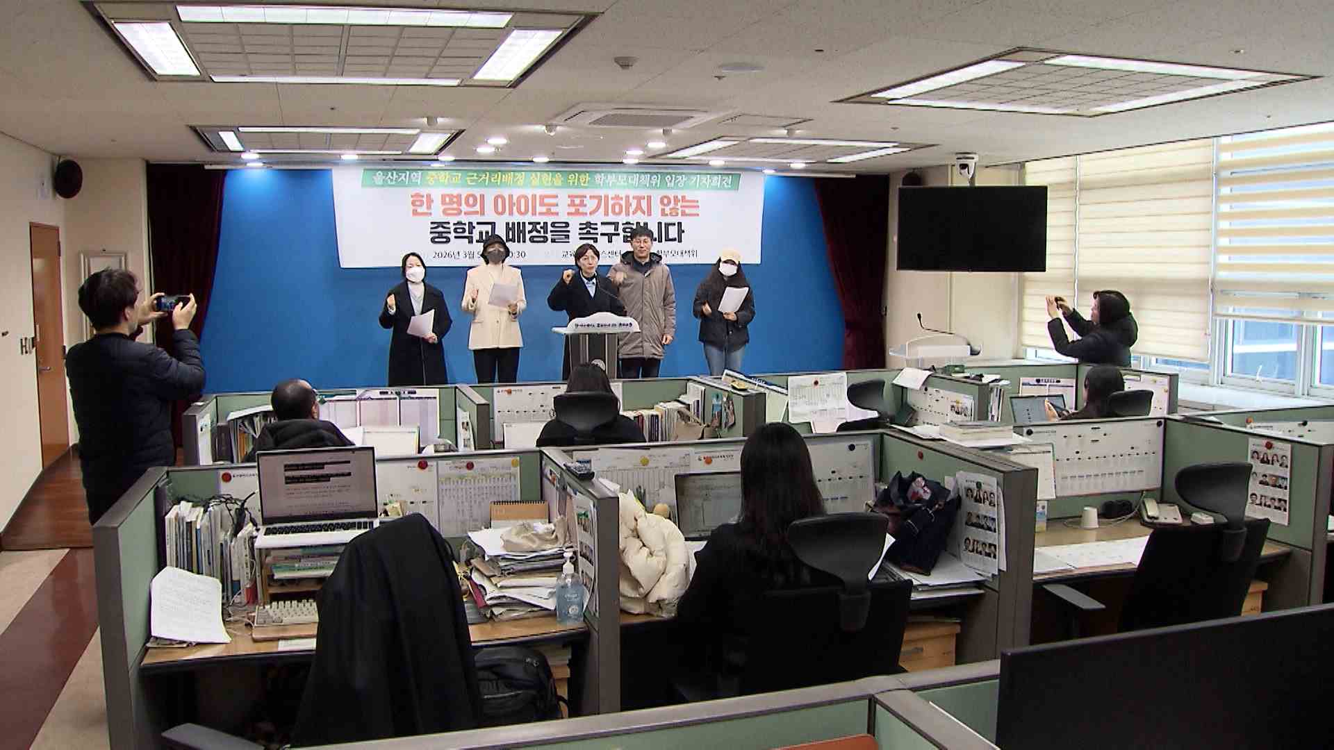 울산지역 중학교 근거리배정 실현을 위한 학부모 대책위원회가 올해 중학교 1학년을 대상으로 내년에 전학할 수 있는 기회를 요구했습니다.