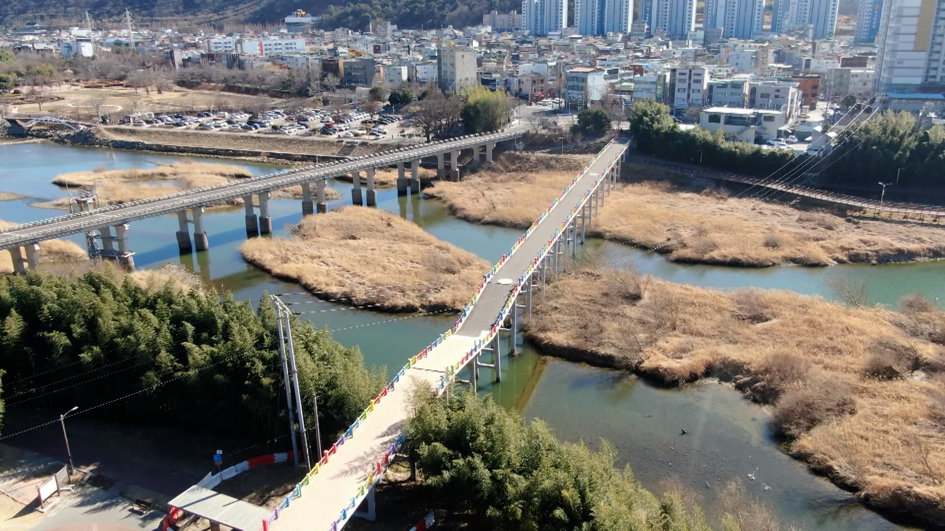 중구는 왕복 2차로인 삼호교의 차로 폭을 줄이고 기존 갓길을 활용해 주민들이 통행할 수 있는 임시 통행로를 조성한다고 밝혔습니다.