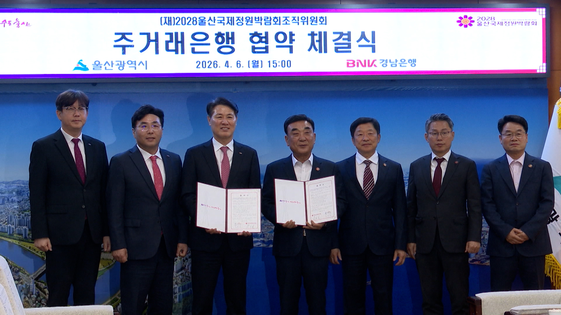 2028 울산국제정원박람회 조직위원회가 BNK경남은행과 주거래은행 협약을 체결했습니다.