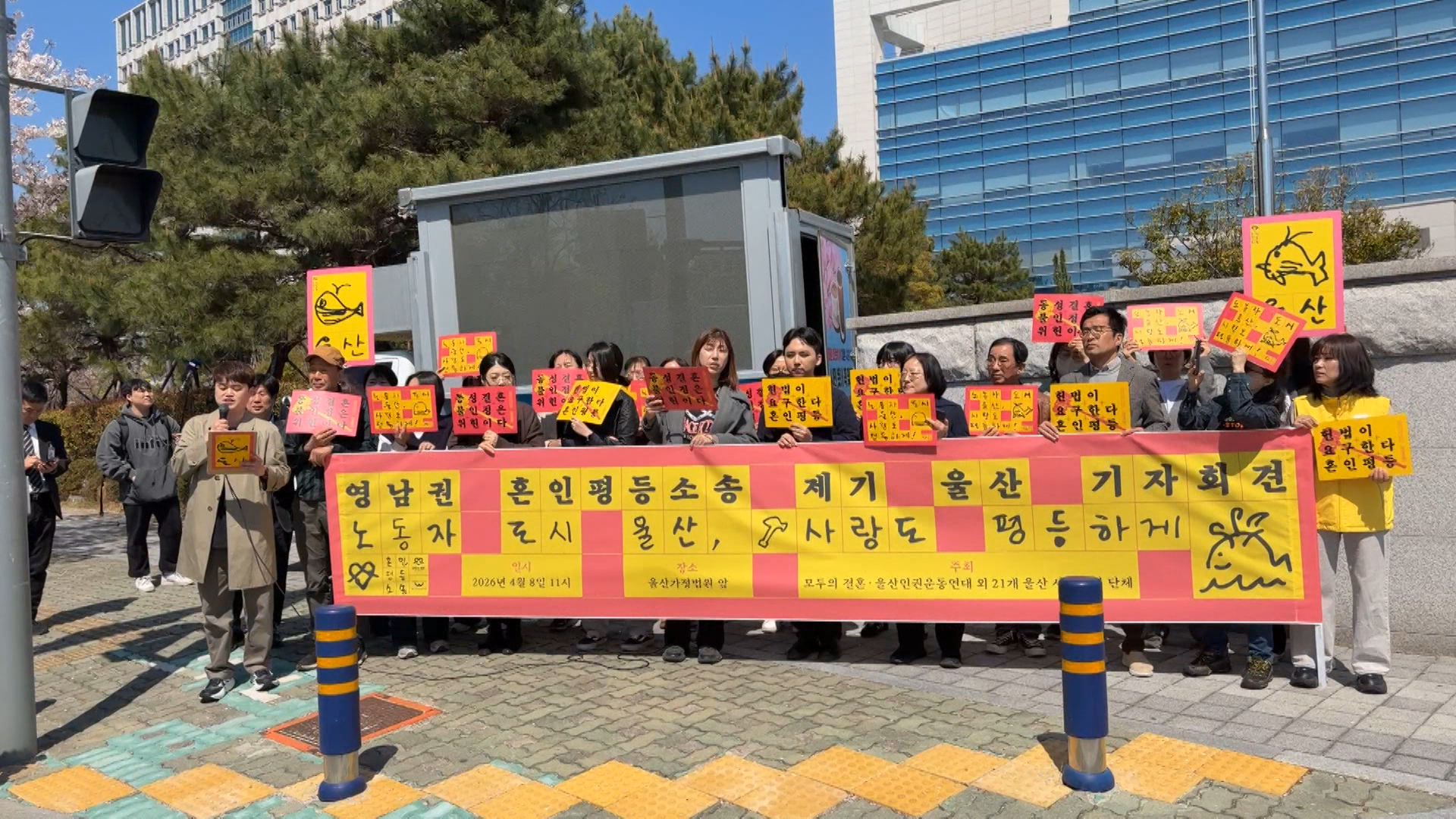 울산인권운동연대에 따르면 조선소 노동자와 공무원인 이들은 지난달 23일 울산 남구청에 혼인신고를 했지만, 현행법상 수리할 수 없는 신고라는 처분을 받았습니다.