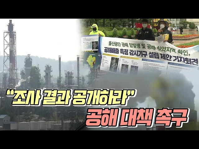 ◀ANC▶산업단지 공해가 암을 일으킨다는 울산MBC 보도 이후 환경단체들이 정부에 조사결과 공개를 촉구하는 기자회견을 열었습니다.울산시의회도 공해로부터 시민을 보호하기 위한 조례 제정을 추진하는 등 대책 마련에 나섰습니다.김문희 기자. ◀END▶ ◀VCR▶환경부가 실시한 예비 타당성 조사 결과울산 공단의 공...