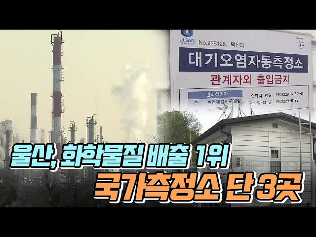 ◀ANC▶전국 화학물질 취급량의 30%를 차지하는 울산은 화학물질 배출밀도가 전국에서 가장 높습니다.서울보다도 260배나 높은 수치인데요,그런만큼 공해가 언제 어떻게 나오는지 잘 측정해서 주민들에게 알리고 대책을 세워야 하는데, 유해대기물질을 감시하는 측정소는울산에 몇개나 있을까요?이용주 기자가 현장을 다...