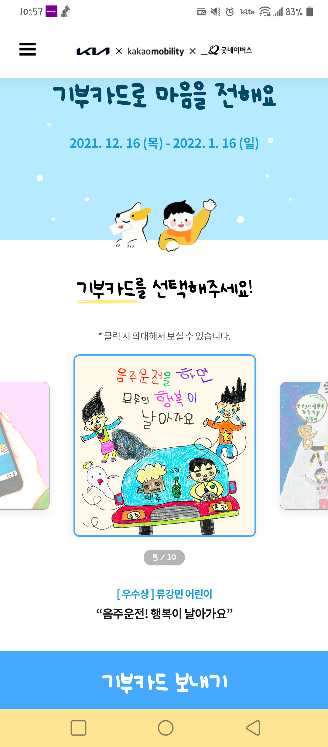 카카오티에서음주운전 예방을 위한 기부캠페인 그림그리기