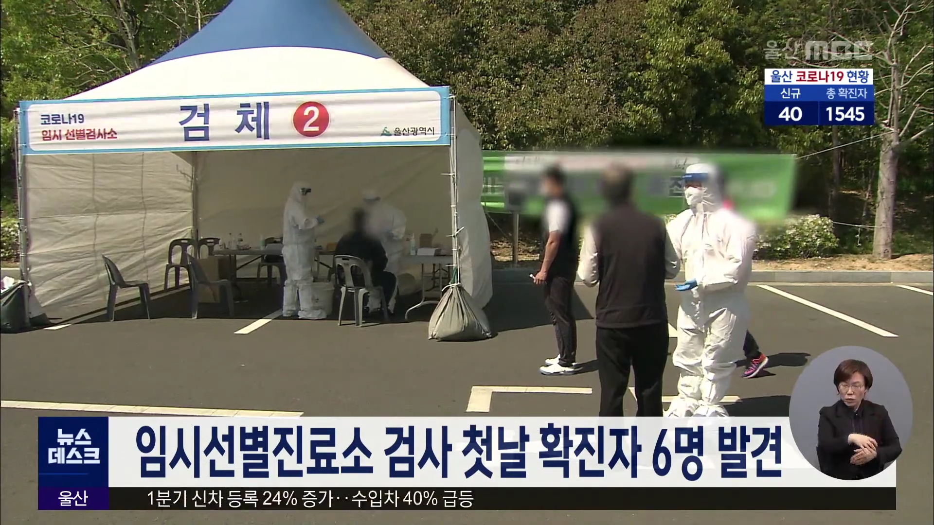한편 어제(4/19)부터 운영된 무료 임시선별진료소에서 코로나19 확진자가 6명 발견됐습니다. 울산시는 어제(4/19) 하루 동안 임시선별진료소에서 검사를 받은 1천 54명 중 남구 3명, 울주군 2명, 중구 1명 등 6명이 확진 판정을 받았다고 밝혔습니다. 임시선별진료소에는 어제(4/20)까지 2천 600명이 넘는 시민이 방문해 검...