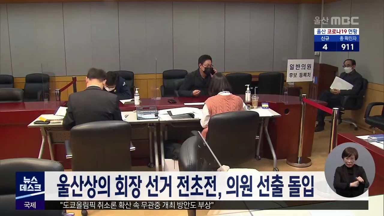 제20대 울산상공회의소 회장 선거의 전초전이 될 의원 선거가 시작됐습니다. 울산상공회의소는 일반의원 100명과 특별의원 12명 등 총 112명을 뽑기로 하고 오늘(1/22)부터 오는 26일까지 후보자 접수를 받습니다. 의원 선거는 다음달 3일에 치러지며 당선된 의원들이 자동으로 다음달 17일 차기 회장을 뽑는 선거인단이 됩...