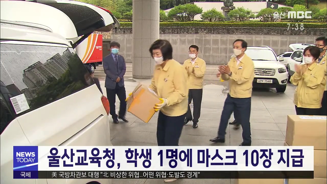 울산지역 학생 1명에게 10장의 마스크가 지급됩니다. 울산시교육청은 국내 공장에서 생산한 일회용 마스크 150만장을 구매해 오늘(6/18)부터 모든 유치원과 초·중·고등학교에 순차적으로 배부합니다. 시교육청은 일회용 마스크가 일반 마스크보다 얇아 무더위 속에 호흡하기 편하기 때문에 지급 물품으로 선정했다고 설명했...