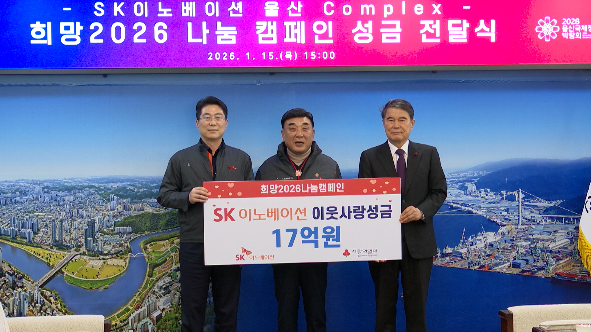 SK이노베이션 울산콤플렉스 구성원들이 울산 지역 취약계층을 위한 이웃사랑성금 17억원을 기탁했습니다.이번에 기탁한 성금은 이 회사 직원들이 기본급의 1%를 자발적으로 기부해 만든 ‘1% 행복나눔기금’과 회사가 출연한 기부금 입니다.