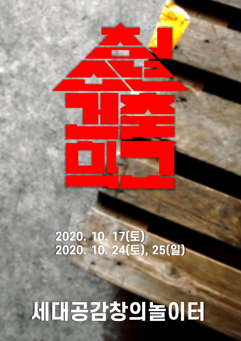 먼저 10월 17일(토)에는 청소년 참가자들과 예술가들이 만나서 어떤 집을 지을 지 상상력을 발휘하여 아이디어를 모으는 ‘상상워크숍’이 진행되고, 10월 24일(토), 25일(일) 이틀간 야외에서 집을 짓는 ‘청소년 건축학교’가 진행된다. ‘청소년 건축학교’의 마지막 날인 25일(일) 오후 5시부터는 완성된 집에 부모님과 가족들을 초대하는 소소한 결과공유회인 ‘공유파티’도 열릴 예정이다.