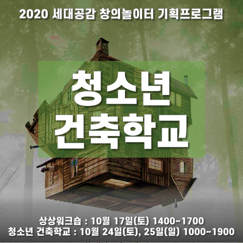 창의놀이터에서 2020년 처음으로 시도하는 기획프로그램 '청소년 건축학교' 관련 안내드립니다.