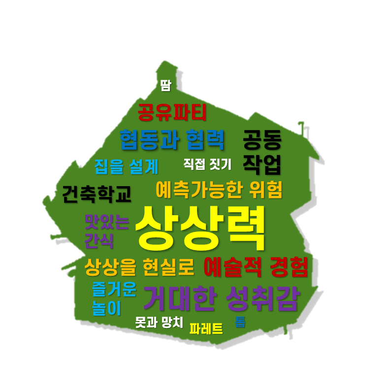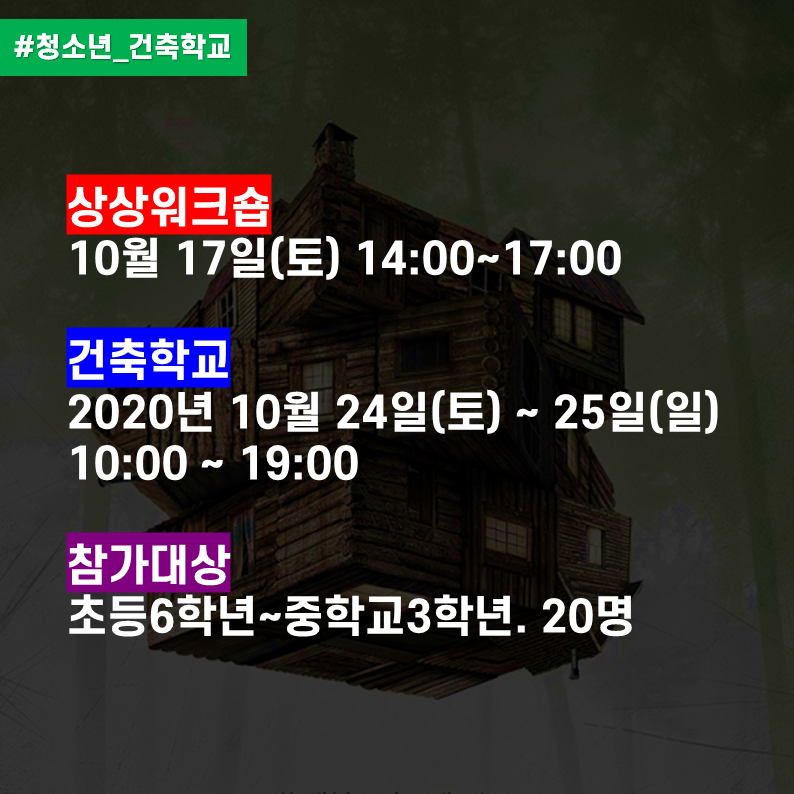 주요내용 : 초등6학년~중학교3학년 청소년 20명을 모집하여, 예술가와 함께 상상하고, 집을 설계하고, 직접 공구를 들고 집을 지어보는 프로그램.