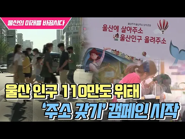 ◀ANC▶울산 인구가 해마다 1만명씩 줄면서112만 8천여 명을 조금 넘고 있습니다.이런 추세라면 앞으로 2~3년 뒤에는 110만도 무너질 거란 예측이 나오는데요비상이 걸린 울산시는 인구 유입을 위해'주소 갖기' 캠페인을 시작했습니다.김문희 기자. ◀END▶ ◀VCR▶6,763명지난 1분기 울산을 떠난 사람들입니다.전국에...