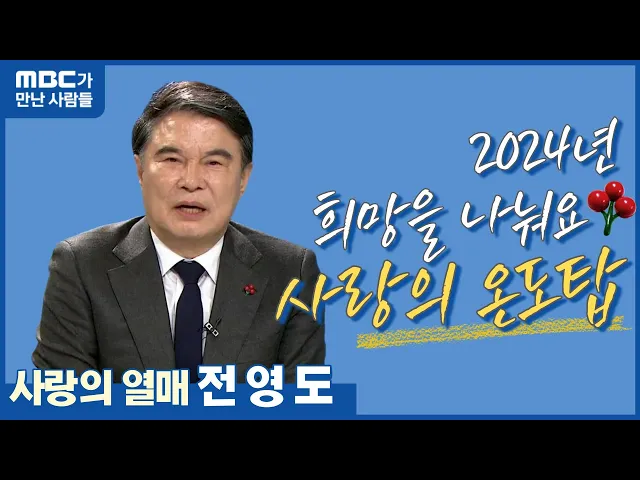 [앵커]겨울이 오면 떠오르는 나눔의 상징물이 있습니다. 바로 지난 1일 울산시청 광장에 세워진 사랑의 온도탑인데요.MBC가 만난 사람 오늘은 희망2024나눔캠페인을 주관하는 울산사랑의열매 전영도 회장을 모시고 이야기 나눠 보겠습니다.질문1. 먼저 희망 2024 나눔캠페인에 대해서 소개 부탁드립니다.울산 사랑의열매에...